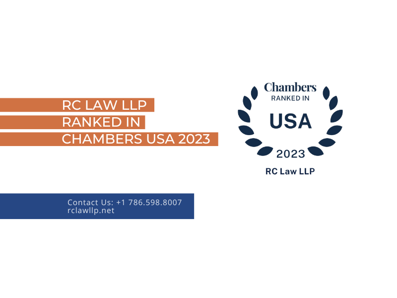 Corporate law firm RC Law LLP has been, for the first time, recognized in the latest edition of Chambers & Partners USA. The firm is ranked in Corporate, M&A and Private Equity South Florida, in Band 5, alongside Florida firms Berger Singerman and Hunton Andrews Kurth.